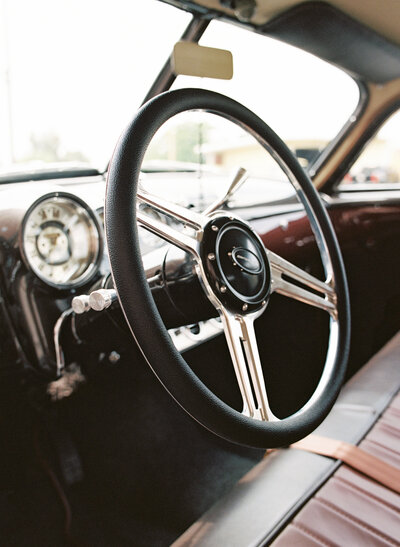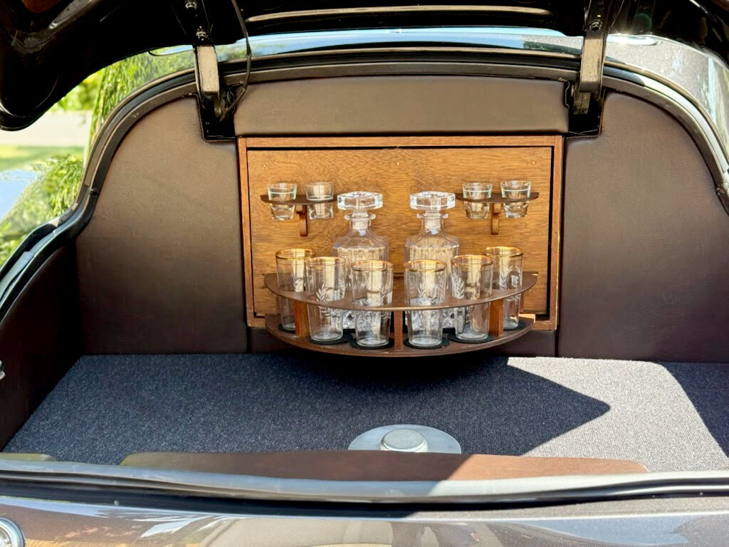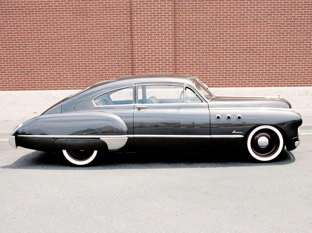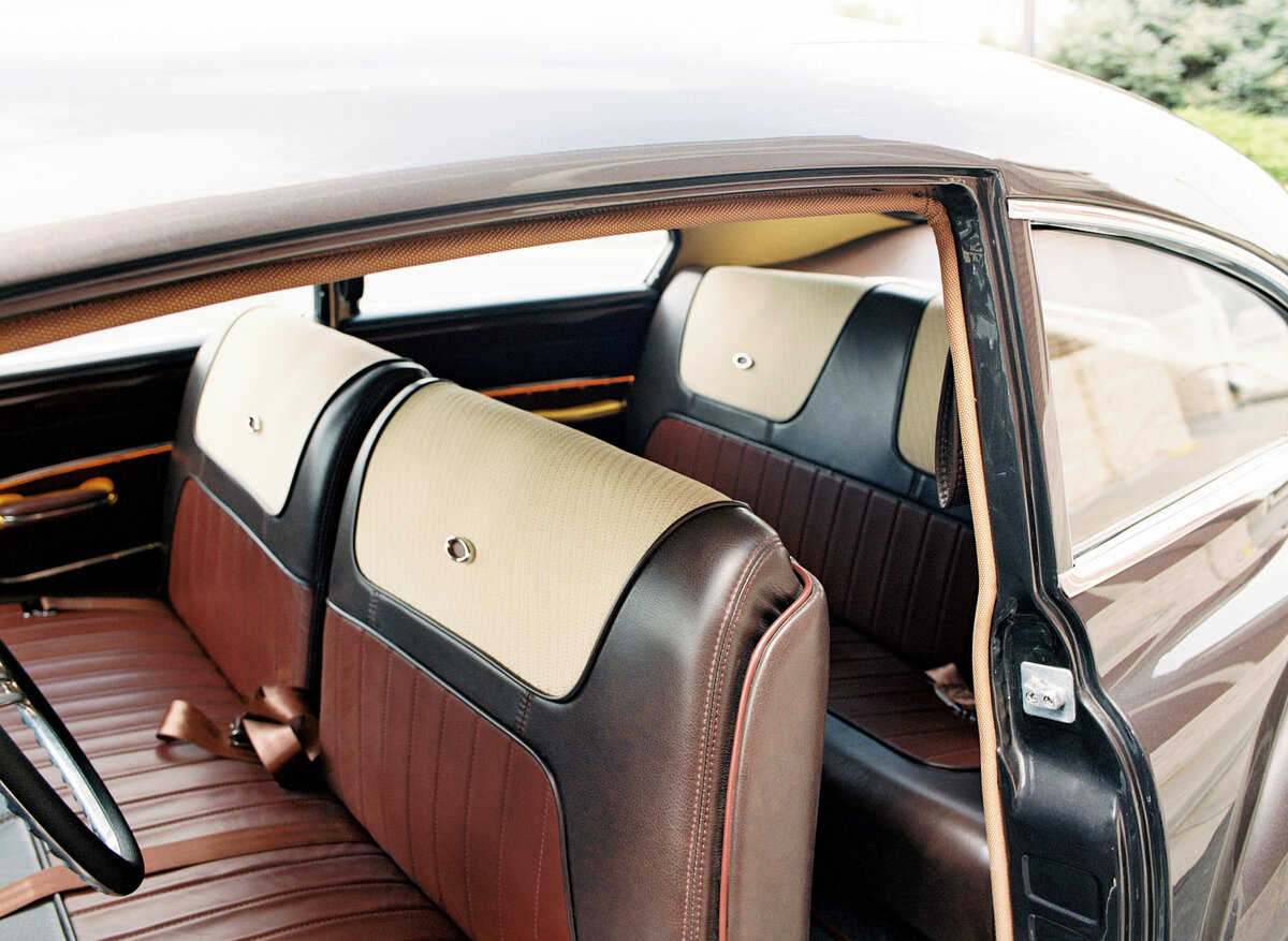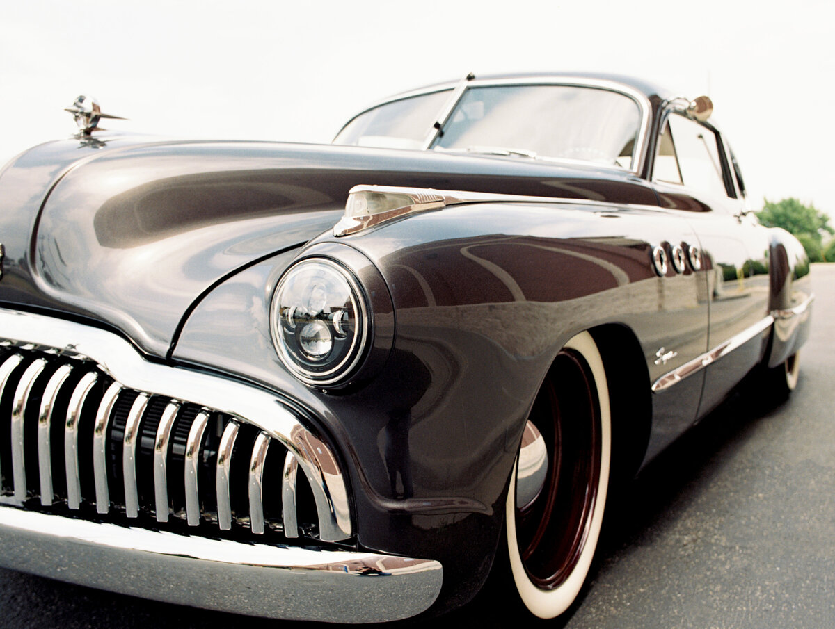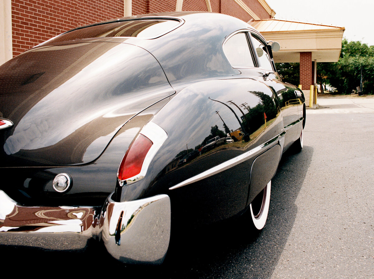 Mile High Classics restored the body and paint on this 1949 Buick Super, and created a custom interior. We replaced the front section of the chassis and converted the rear suspension to a 4-link coil-over suspension with a 9-inch Ford rear axle and hydroboost powered 4-wheel Willwood disc brakes. We also installed a Chevy LS 376 engine with a 4L60 automatic transmission. The trunk is custom upholstered with a one-of-a-kind liquor bar. For the body, we fabricated a custom front bumper, relocated the taillights, frenched in the rear fenders, and removed the drip rails.
